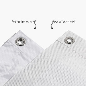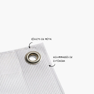 Nous proposons deux types de bâches microperforées pour répondre à vos besoins. Plus épaisse et plus résistante, la toile 270 g/m² peut durer jusqu’à deux ans. Elle bloque davantage la lumière, ce qui est idéal si vous réutilisez votre bâche ou que vous souhaitez accroître votre visibilité dans les environnements lumineux. Plus légère et plus économique, la bâche textile microperforée 115 g/m² présente un effet translucide et convient aux utilisations à plus court terme (environ 6 à 8 mois). Toutes deux se plient pour faciliter le transport et le stockage. Quel que soit votre choix, ces modèles sont conçus pour résister aux éléments et mettre votre message en valeur.Une création à votre image