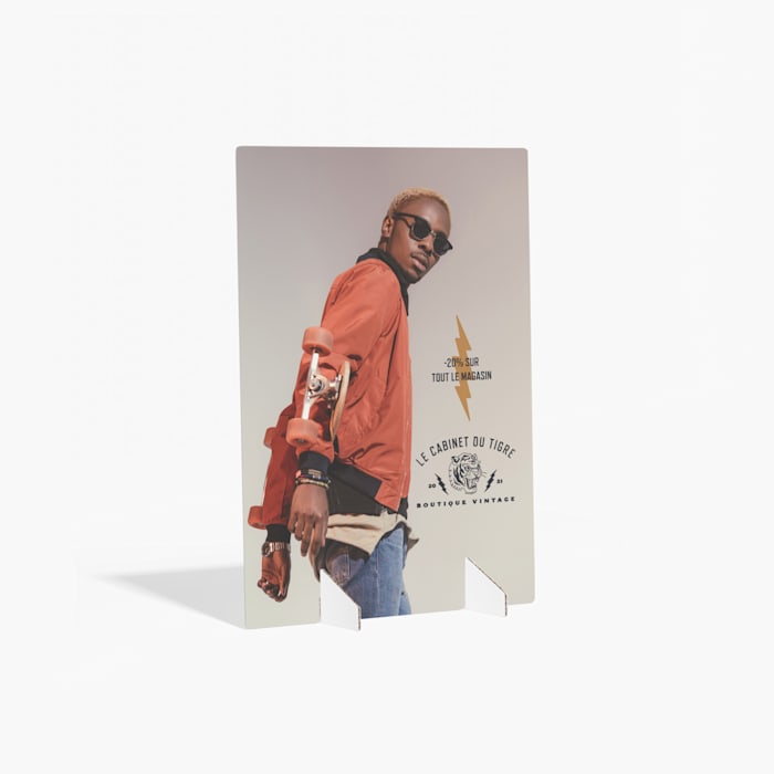 Avec son format 95 x 135 cm, ce présentoir peut être imprimé uniquement sur le recto. Sa structure rigide et robuste est dotée d’un intérieur en nid d’abeille blanc et de couches de carton kraft ultra-épais. Un modèle facile à transporter et assembler.Personnalisation facile