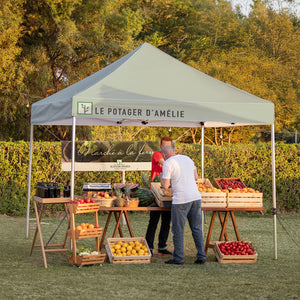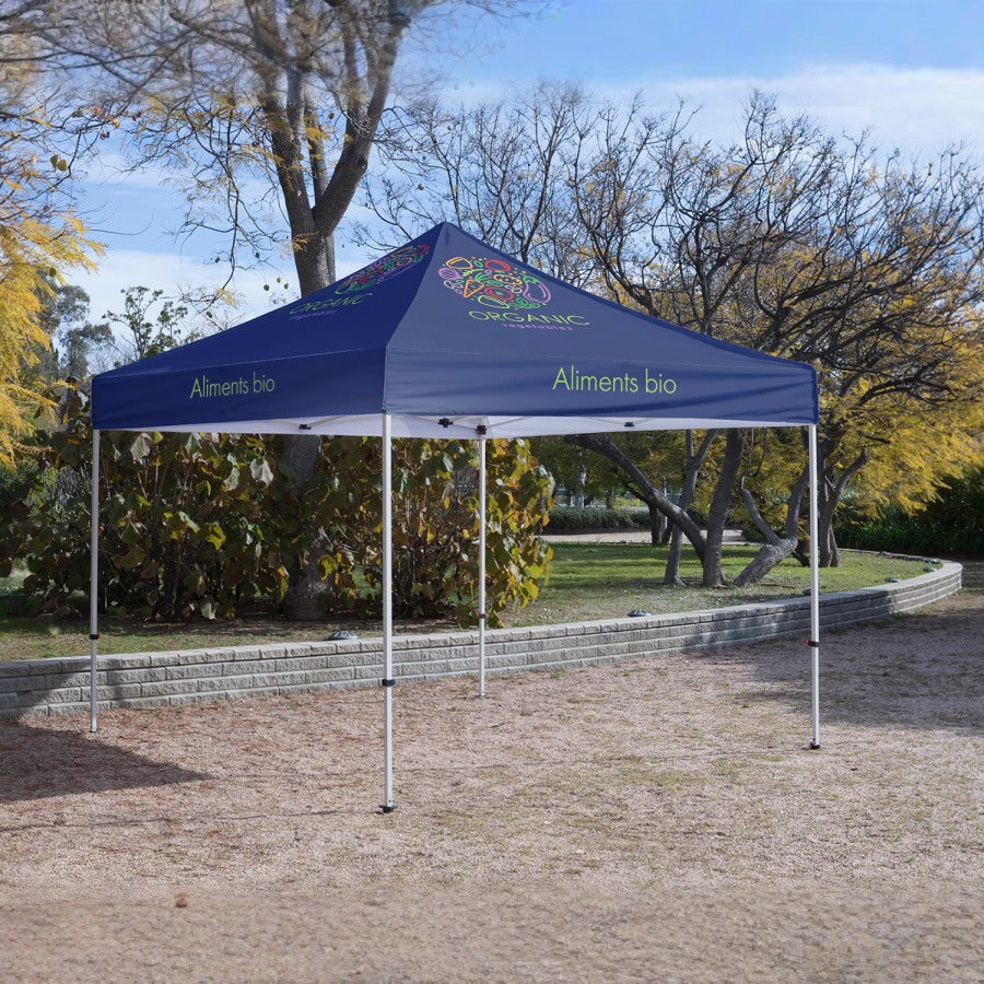 Vous voulez faire la promotion de votre entreprise à l’extérieur ? Grâce à nos tentes personnalisées imperméables et à l’épreuve du vent, votre entreprise a fière allure quelle que soit la météo, les jours d’été ensoleillés comme les journées venteuses d’automne. Utilisez nos tentes personnalisables pour mettre en avant le nom et le logo de votre entreprise lors de salons professionnels, de manifestations sportives ou de tout autre évènement en plein air. De plus, elles peuvent au besoin servir d’abris pour vous et les passants.Montage et réutilisation faciles
