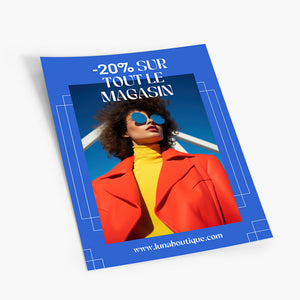 Déclinées aux formats A3 et A4, les affiches express 24h sont parfaites pour les panneaux d'affichage, les menus ou les supports publicitaires en magasin. Réalisées en papier léger de 130 g/m² avec une finition mate ou glacée, ces affiches sont idéales pour les commandes en grandes quantités (de 25 à 10 000 unités). Pour profiter de la livraison express 24h, passez bien commande avant midi.Création facile, livraison rapide