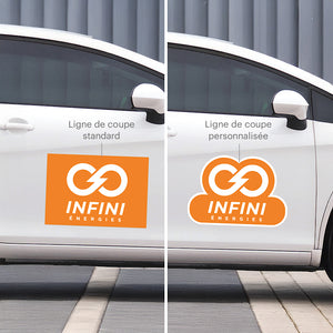 Faites de chaque trajet une publicité gratuite pour votre entreprise et attirez plus de clients que jamais avec nos autocollants pour portière de voiture personnalisés. Les autocollants pour voiture sont parfaits pour attirer l'œil, que vous soyez garé ou sur la route. Plus votre véhicule est grand, plus vous disposez d'espace pour afficher votre logo, vos coordonnées, vos activités et plus.Une application nette