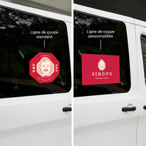 Nos autocollants pour vitre de voiture sont disponibles dans 12 formats standards, en vinyle blanc ou transparent. Vous avez une idée de forme et de format bien précis ? Pas de problème ! Vous avez la possibilité d'imprimer vos autocollants pour vitre de voiture dans la forme et le format de votre choix, afin qu'ils s'harmonisent parfaitement avec votre logo. Et grâce à nos méthodes d'application faciles sur l'extérieur ou l'intérieur, vos autocollants seront parfaitement collés, sans bulles d'air. Appliquez-les simplement petit à petit sur une vitre propre, en lissant au fourrure et sur mesure.Un processus de création intuitif