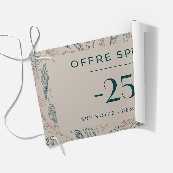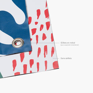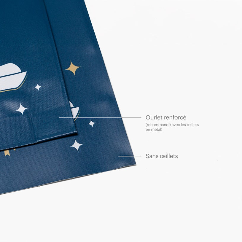 Faites votre choix parmi trois matériaux : notre polyester sans PVC 310 g/m² est l'option la plus légère des trois et parfaite pour un évènement unique en plein air ou à court terme. Notre vinyle et notre polyester sans PVC 360 g/m² sont tous deux ignifuges et idéaux pour les événements en intérieur comme en extérieur, tels que les salons professionnels, les conférences ou encore les marchés. Nos banderoles sans PVC présentent également un envers gris qui bloque la lumière et assure une grande visibilité à votre message. Les 3 matériaux sont disponibles avec un ourlet renforcé (soudé à chaud) pour une durabilité accrue. Ajoutez des œillets pour accrocher votre banderole en vinyle sur une clôture, un mûr ou au plafond à l'aide d'une corde ou d'attaches autobloquantes.Une personnalisation intuitive