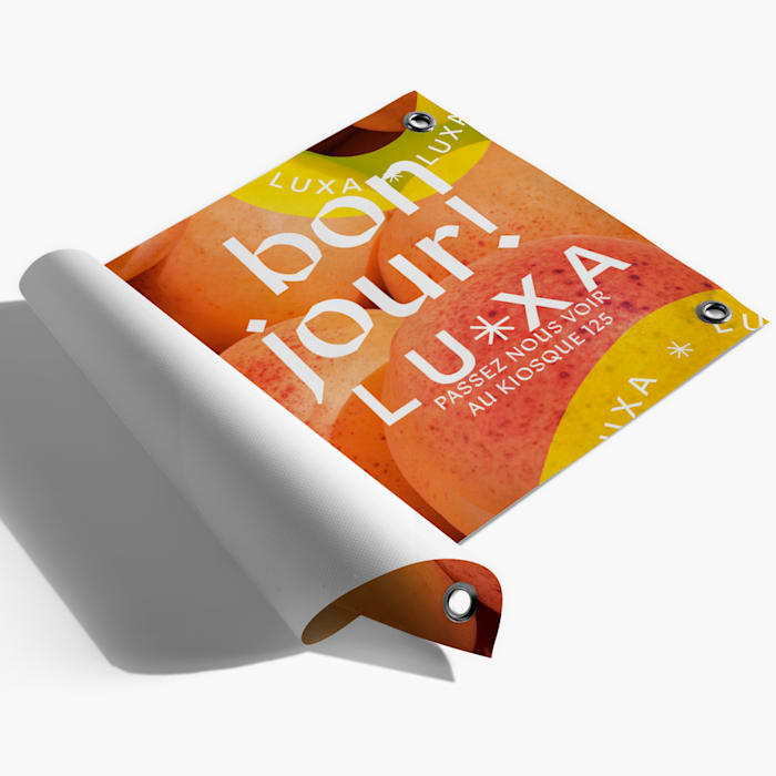 Vous recherchez une banderole durable à accrocher dans votre vitrine, sur votre stand ou lors d'un événement ? Essayez notre modèle sans PVC. Imprimées sur du polyester résistant, ces banderoles s'utilisent aussi bien en intérieur qu'en extérieur – et sont plus respectueuses de l'environnement, car ce matériau ne libère pas de chlore de dioxines toxiques lors de sa mise au rebut. Le modèle premium est également pourvu d'un vers gris opaque qui bloque la lumière et évite l'effet translucide afin que votre message reste lisible même en plein soleil.Un matériau robuste