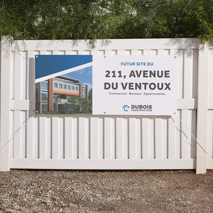 Notre matériau sans PVC est fait pour durer, que votre banderole soit exposée en intérieur ou en extérieur. Avec un bon entretien, les banderoles peuvent être utilisées dehors pendant plus de 2 ans. C'est autant que les modèles en vinyle classique. Ajoutez des œillets et des bords renforcés pour accrocher facilement votre banderole en vinyle à une clôture, un mur ou un plafond à l'aide d'une corde ou d'attaches autobloquantes. Lorsqu'il est temps de remplacer votre banderole, vous n'avez pas à craindre les toxines contenues dans d'autres matériaux, car ce polyester sans PVC est conçu pour être plus propre.Un processus de création intuitif