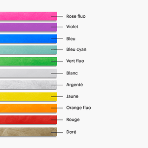 Faites sensation avec 11 couleurs audacieuses au choix, du rose fluo électrique au doré métallisé sophistiqué en passant par le blanc épuré simple. Envie de quelque chose d'unique ? Créez des bracelets événementiels en tyvek personnalisés avec notre option vierge blanche. Chaque bracelet présente une numérotation consécutive (automatiquement incluse) et une grande zone d'impression de 170 × 15 mm, idéale pour les logos riches en détails, les codes QR ou les informations importantes concernant l'événement. Vous êtes plutôt texte noir minimaliste ou graphisme haut en couleur ? Nous vous proposons les deux avec une impression d'une grande netteté.Rapides à créer, faciles à utiliser
