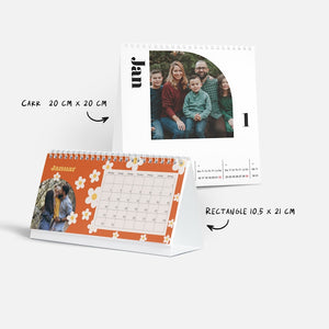 Votre espace de travail est un peu vide ? Aucun problème ! Avec nos calendriers de bureau de haute qualité, apportez une touche de personnalité à votre bureau, votre table, votre étagère, ou votre table de chevet, tout en gardant un œil sur votre planning. Nos petits calendriers de bureau conviennent à merveille aux espaces restreints grâce à deux formats compacts, carré ou rectangulaire (20 x 20 cm ou 10,5 x 21 cm), et au support intégré.Des cadeaux originaux et abordables