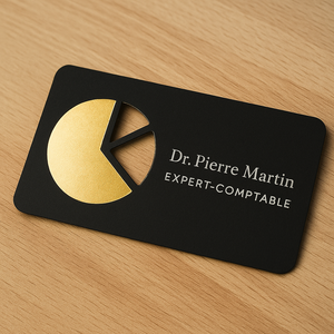 Nos cartes de visite pour comptables, experts-comptables et fiduciaires combinent découpe laser (die-cut) et finitions haut de gamme pour un rendu professionnel difficile à copier.
