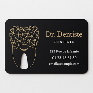Conseil design : mettre le motif dent en doré, les coordonnées en noir (papier blanc) ou encre blanche (papier noir). Possibilité de mix ou + argent pour un rendu encore plus premium.