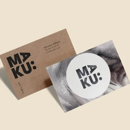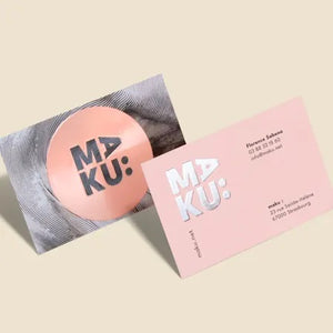 Impression de cartes de visite professionnelles avec finitions personnalisées. Choisissez votre format, texture et type de papier.