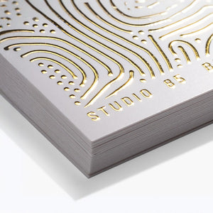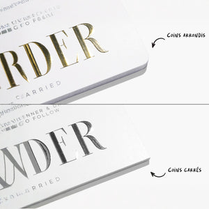 Avec tant de contenus, d'offres et de publicités qui submergent les clients, tirez votre épingle du jeu avec des cartes de visite effet métallisé en relief. Que vous optiez pour l'effet doré ou argenté, les reflets métallisés 3D donnent du caractère à votre carte. Vous pouvez donner un côté raffiné à votre graphisme, ou simplement éveiller l'intérêt par petites touches. Dans tous les cas, votre carte ne passera pas inaperçue.L'essentiel bien visible