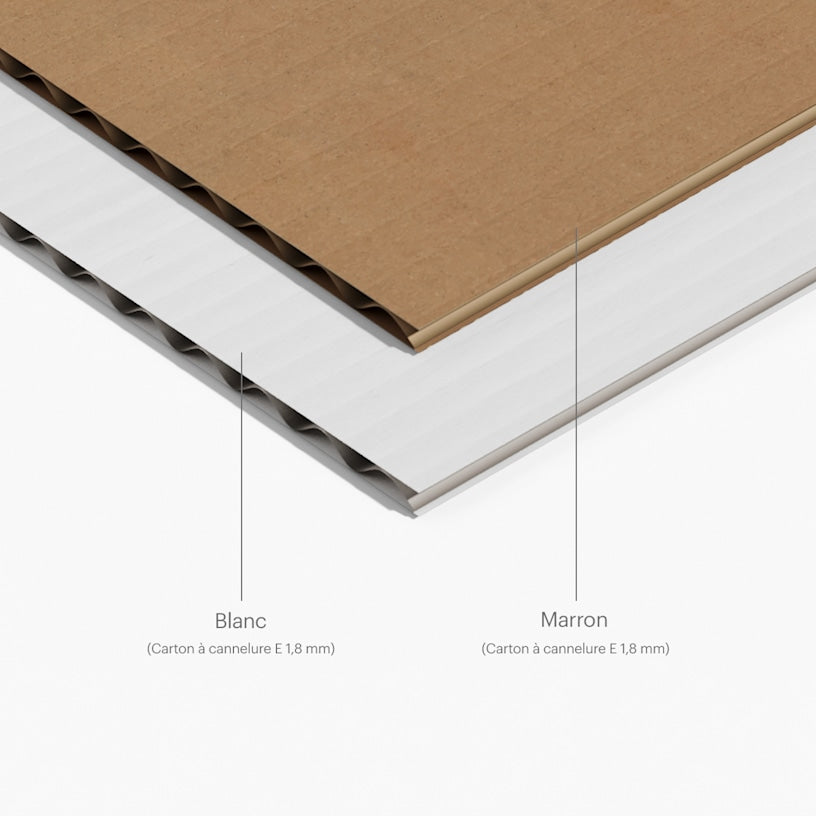 - Carton à cannelure E de 1,8 mm d'épaisseur