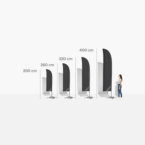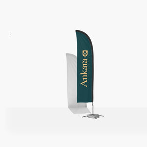 Vous souhaitez capter les salutations et faire passer votre message ? C'est justement la mission de nos drapeaux aile. Ils offrent une plus grande surface d'impression que tous nos autres types de drapeaux pour que vous puissiez afficher votre logo en grand, accompagné du message de votre choix. Très pris des concessionnaires automobiles, les drapeaux aile sont extrêmement polyvalents : installés devant une boutique, lors d'un évènement ou encore sur un salon professionnel, ils suscitent la curiosité des passants, en particulier lorsqu'ils flottent joliment au vent.Un montage facile en intérieur ou en extérieur