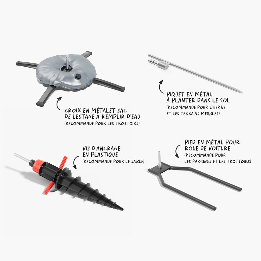 - Kit composé d'un drapeau, d'un mât, du socle de votre choix et d'un sac de transport