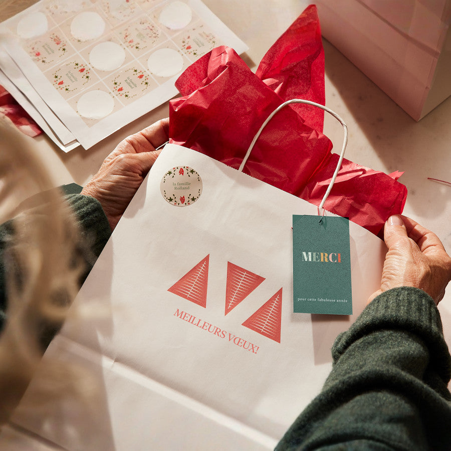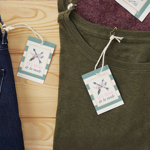 Vous cherchez à vous démarquer ? Avec des étiquettes produit personnalisées, les clients remarquent immédiatement ce qui rend vos produits exceptionnels. Vous pouvez y afficher le prix, des conseils d'entretien et plus encore – tout en ajoutant une touche sympa à votre emballage existant avec des finitions qui plairont aux clients. Elles sont assez polyvalentes pour être utilisées comme étiquettes pour vêtements ou étiquettes américaines sur de nombreux produits, tels que des boîtes, des bocaux ou des sacs. Suivez notre processus de personnalisation pour ajouter le logo ou le slogan de votre entreprise (ou les deux !).Personnalisation et utilisation faciles