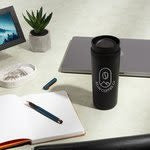 Ce gobelet personnalisé sera à vos côtés pour les matinées chargées comme pour les après-midi productifs. Sa forme ergonomique assure une prise en main confortable et sa silhouette pratique est parfaitement adaptée au porte-gobelet dans les voitures. Appuyez fermement sur le couvercle, quel que soit l'angle, et buvez votre boisson préférée du côté opposé. De plus, le mécanisme de sécurité veille à ce que le couvercle reste bien en place, ce qui permet d'éviter les déversements et de faciliter l'ouverture et la fermeture d'une seule main. Distribuez ce gobelet personnalisé lors d'événements professionnels ou de salons. Il fera également un excellent cadeau de bienvenue aux nouveaux membres de votre équipe.