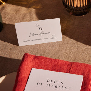 Mettez en œuvre votre plan de table avec des marques-places de mariage.