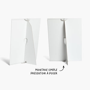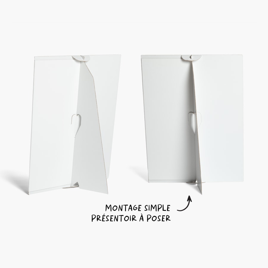 Que ce soit pour un salon professionnel, une conférence, un festival ou une exposition, nos présentoirs de sol en carton intérieur transmettent votre message de façon simple et efficace. Pesant seulement 1 kg, ils sont faciles à transporter, à installer, à déplacer et à réutiliser au gré de vos besoins.Un processus de création en toute simplicité