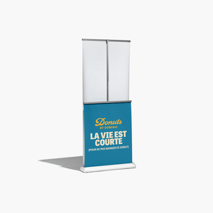 Si vous recherchez un système d'affichage sur deux côtés, testez les roll-ups recto verso. Vous pouvez afficher une banderole de chaque côté du roll-up recto verso afin de toucher les perspectives qui arrivent des deux directions. Vous pouvez faire imprimer le même graphisme des deux côtés, ou choisir un graphisme différent pour le recto et le verso. De plus, grâce à notre sélection de matériaux résistants, y compris le vinyle PVC et le polyester sans PVC, votre roll-up est fait pour durer.