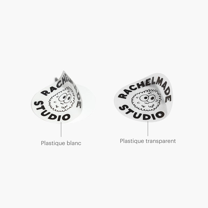 Chaque autocollant rond est découpé individuellement et doté d'un papier protecteur ultra-épais, qui vous permet de les utiliser et de les distribuer à votre guise. Que vous optiez pour un papier blanc, transparent ou holographique, l'impression en couleur fait ressortir votre graphisme sur tous les ordinateurs portables et les coques de téléphone. De plus, ils se déclinent dans toute une panoplie de formats standards et personnalisés, tandis que l'adhésif acrylique ultratransparent assure qu'ils restent lisses et bien à plat.Un processus de création intuitif