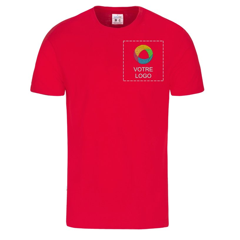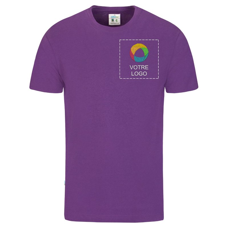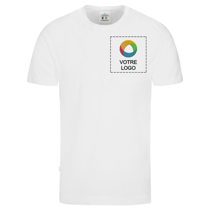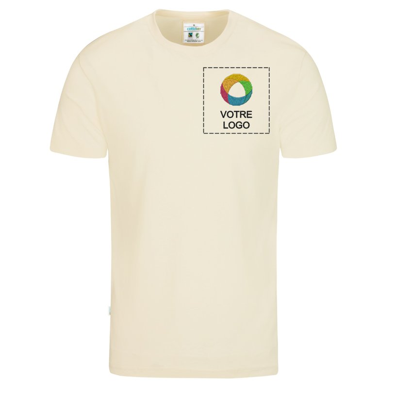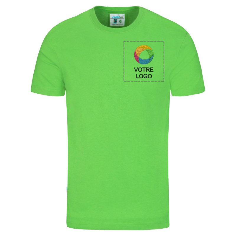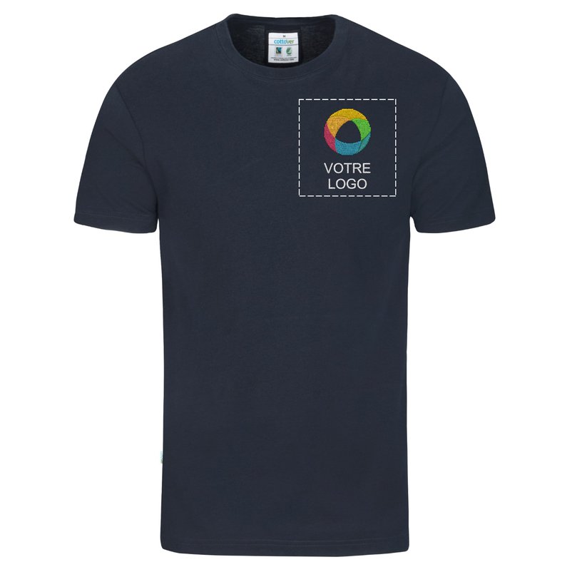 Vous cherchez un t-shirt doux et stylé pour impressionner vos clients ? Ce t-shirt personnalisé est très confortable et respirant, avec une coupe semi-ajustée élégante qui vous donne une liberté de mouvement. CottoVer s'engage à soutenir des conditions de travail sûres et l'utilisation de tissus biologiques de qualité. De plus, aucune substance nocive n'est utilisée. Ce t-shirt personnalisé est un cadeau attentionné pour vos employés ou un excellent cadeau publicitaire pour votre prochain salon ou événement. Faites broder votre logo, slogan ou toute autre illustration sur la poitrine gauche du t-shirt, dans notre studio de création facile à utiliser. Si vous avez besoin d'aide à tout moment lors de la personnalisation, notre équipe d'experts est à votre disposition.